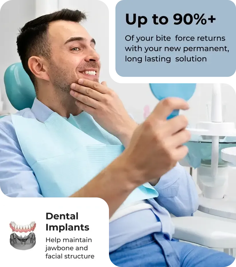With proper care, a lifetime. All-On-X® implants are built to last and can be a permanent solution with the right maintenance.